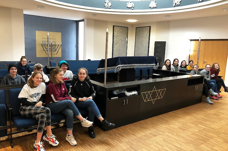 Mit einer fröhlichen Gruppe Achtklässler klingelte Lehrerin Manuela Grimm vergangene Woche an der Tür der Synagoge in Lörrach. Das würfelförmige Gebäude mit den goldenen Davidsternen in der Rainstraße war vielen vorher schon aufgefallen, umso neugieriger waren die Schülerinnen und Schüler der R8a auf das Innere des israelischen Gemeindezentrums.