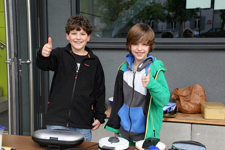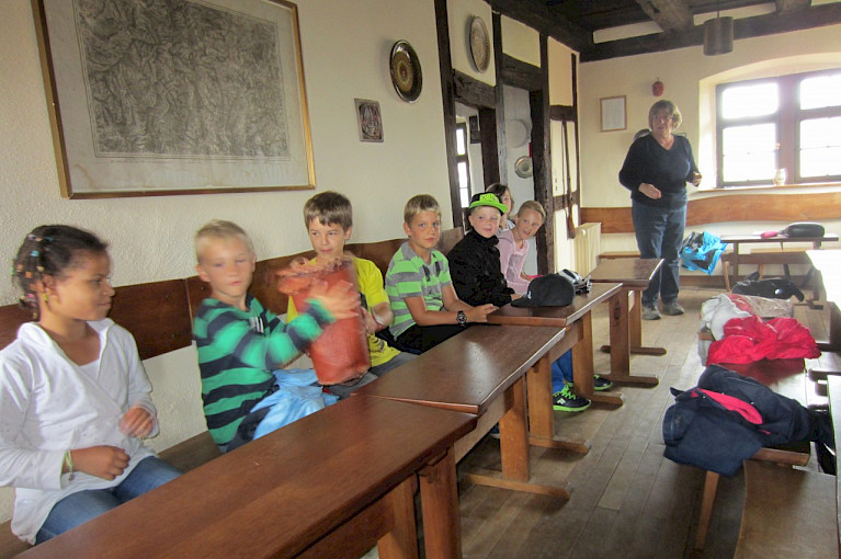Bei strömendem Regen zog die Klasse 3b, ausgerüstet mit Regenjacken und Regenschirmen, am Dienstag, den 8.7.2014 los, um die Stadt Waldshut aus einer anderen Perspektive passend zum MNK-Thema „Früher und heute – meine Stadt“ kennenzulernen.