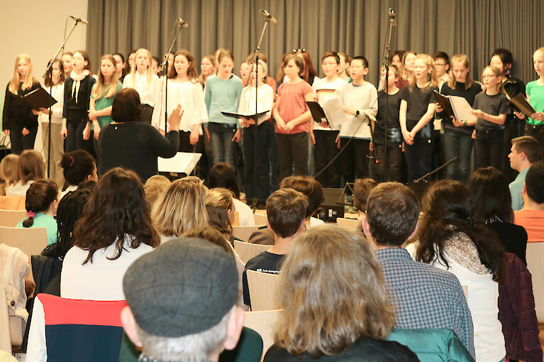 Am Mittwoch vor den Osterferien hatte die Musikfachschaft wieder zum alljährlichen Frühjahrskonzert eingeladen. Los ging’s in der sehr gut besuchten Mensa mit einem Klassiker der Filmmusik: Mit großer Leidenschaft trug das Unterstufenorchester „Conquest of paradise“ aus dem Film „1492“ vor. Etwas leisere Töne wurden danach von Nolwenn Bihannic (Violine) und Carmen Lobo Ruiz (Cello) angeschlagen. Die beiden Siebtklässlerinnen spielten die Sonate in E-Dur von Händel.