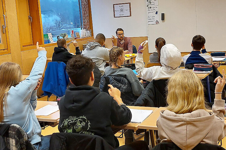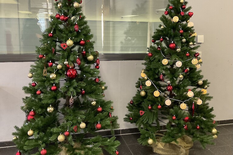 Die Klasse 7b hat am Nikolaustag tüchtig und mit großer Begeisterung die beiden Weihnachtsbäume im Foyer geschmückt, sodass unsere Schule weihnachtlich geschmückt ist und rechtzeitig zum Weihnachtsmusical perfekt vorbereitet ist. Es hat allen viel Spaß gemacht.
