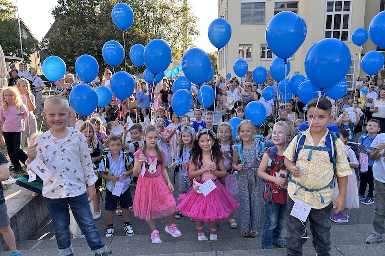„Hier bist du richtig, du bist Gott wichtig“ – mit diesem ermutigenden Lied begann die Einschulungsfeier unserer GrundschuleGemeinsam. Bei strahlendem Spätsommerwetter hieß Schulleiterin Sonja Benz-Peiszan die neuen Erstklässlerinnen und Erstklässler sowie ihre Familien herzlich willkommen. Sie machte deutlich: In der Schule geht es nicht nur darum, Lesen und Schreiben zu lernen – jedes Kind soll mit Zuversicht kommen und sich angenommen und wertgeschätzt fühlen.