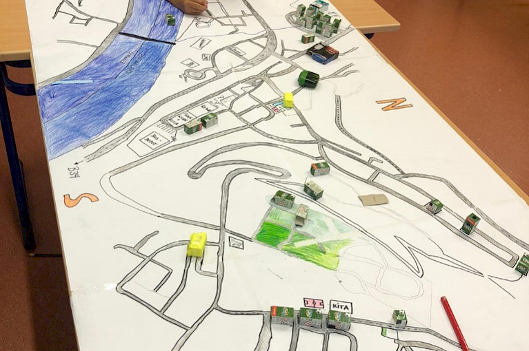 Aus Google Maps wird ein wunderschön gestaltetes Unikat: Die Klasse 3a stellt im Sachunterricht eine Karte von Waldshut her.